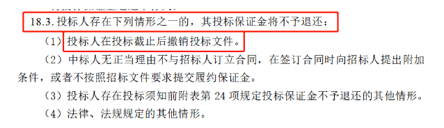 此前文件明确:存在“投标人在投标截止后撤销投标文件”等4种情形之一的,其投标保证金将不予退还。