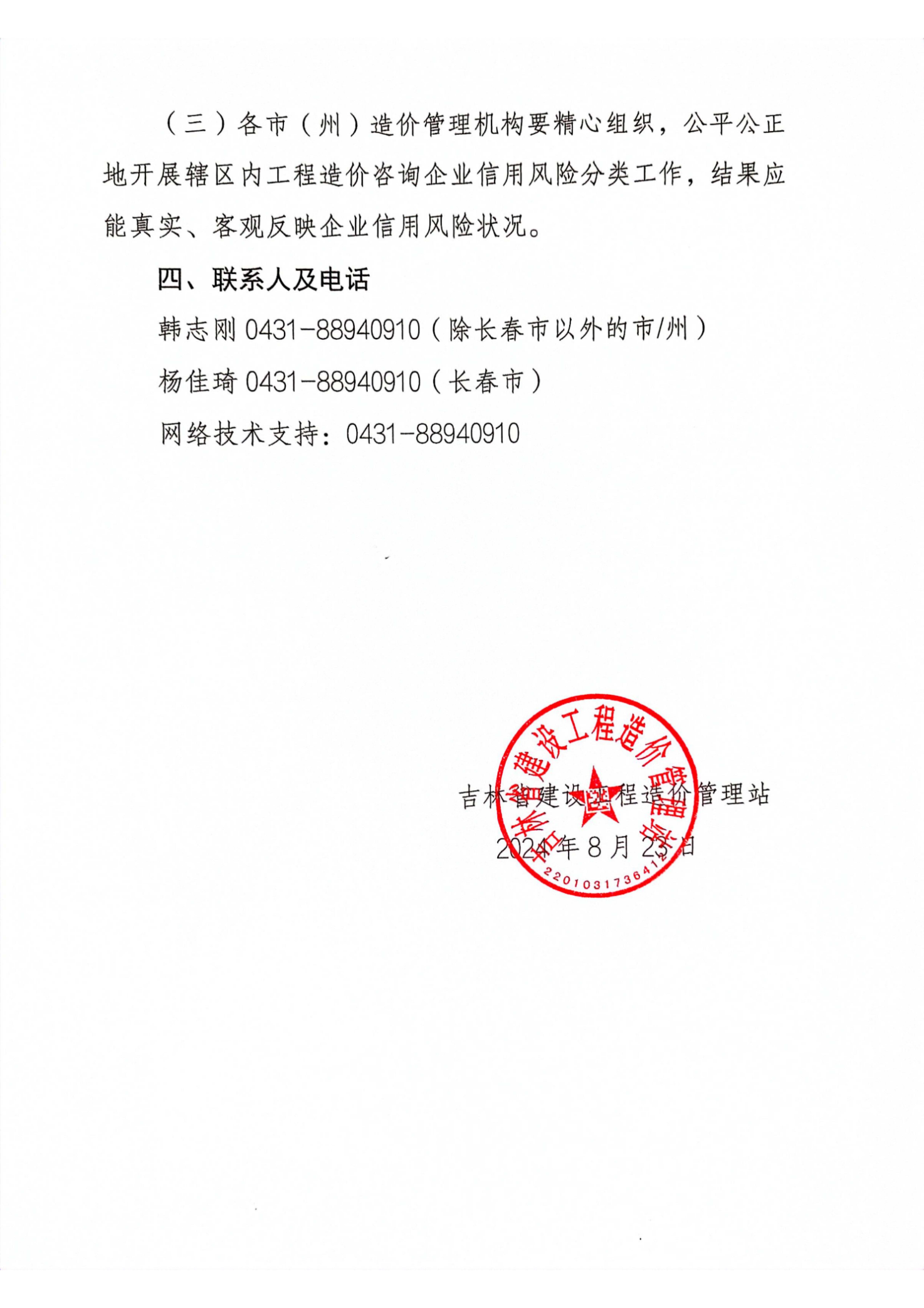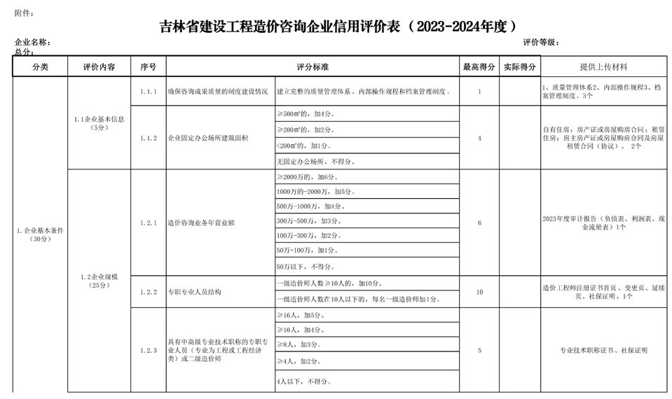 吉林省建设工程造价管理站关于发布《2023-2024年度全省工程造价咨询企业信用风险分类工作方案》的通知