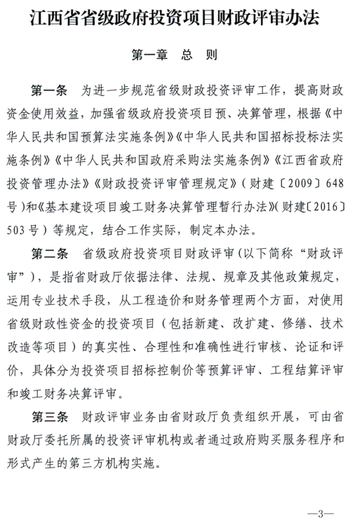 江西省财政厅关于印发《江西省省级政府投资项目财政评审办法》的通知